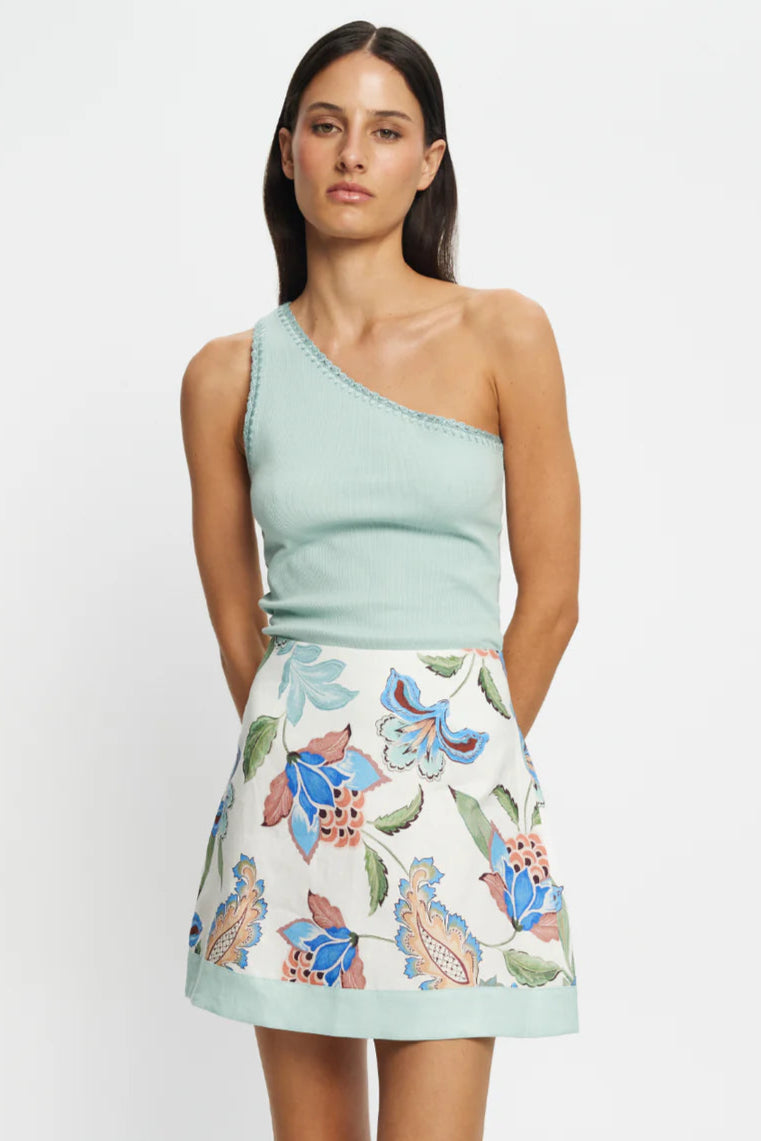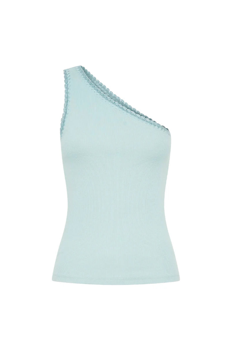 A modern essential, our signature Tallulah One Shoulder Tank in butter is cut from a premium rib knit. Defined by its asymmetric one-shoulder neckline and hand-crochet trim, this piece balances effortless wear with artisanal detail.