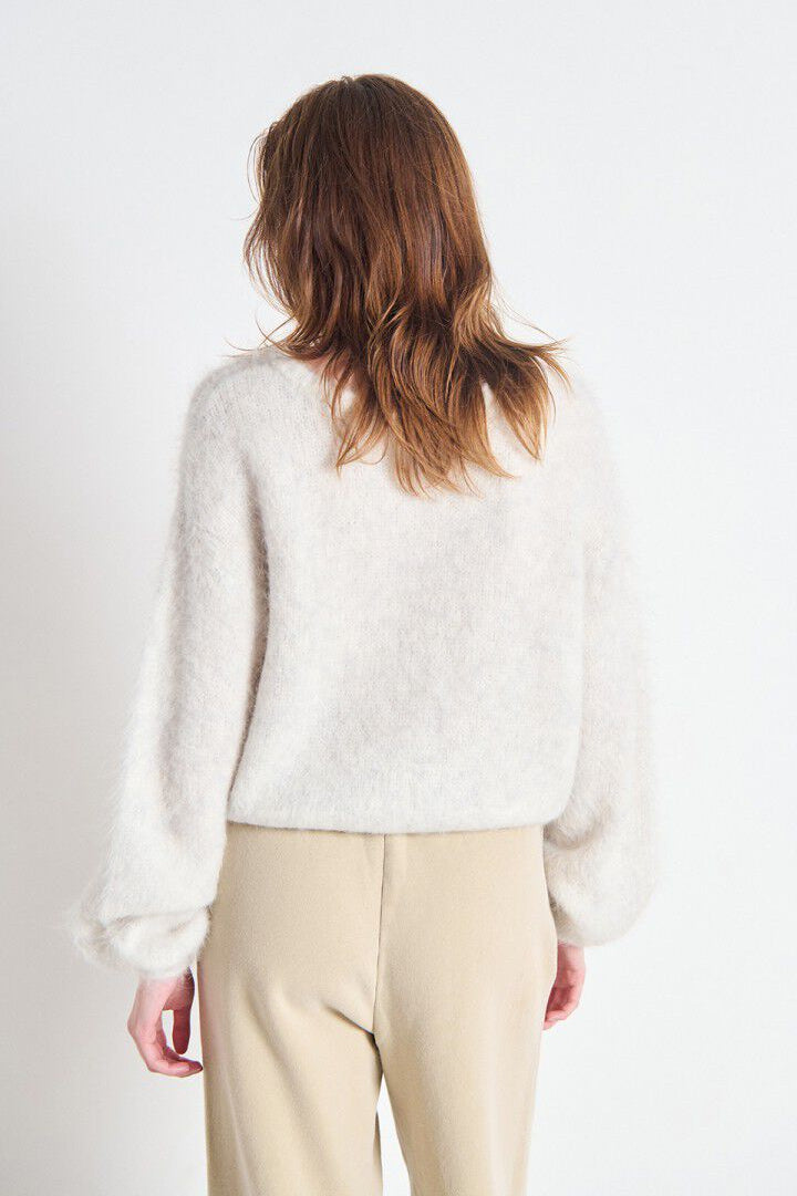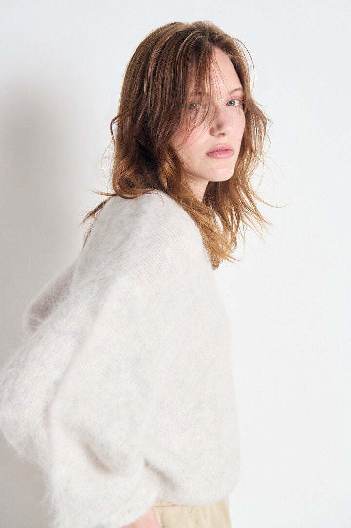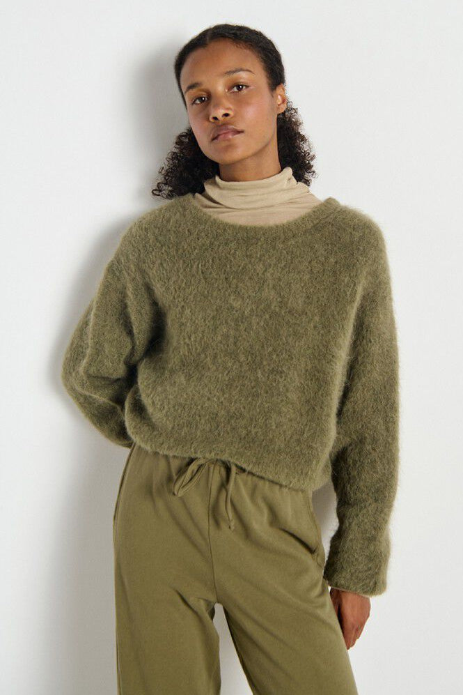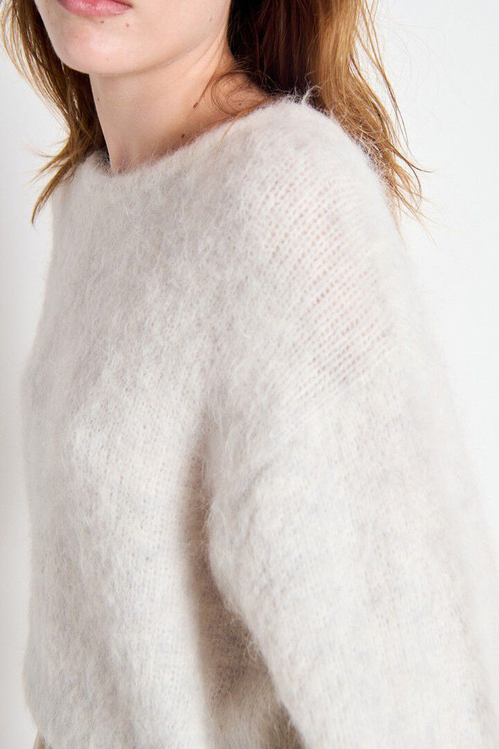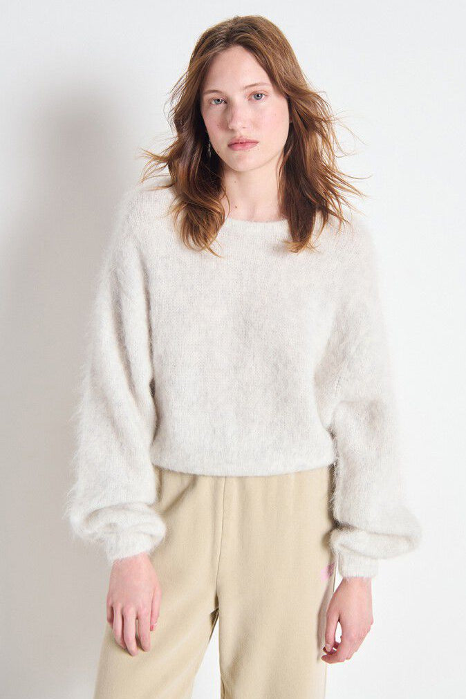 With its thick, bold knit, the Niby jumper envelops the silhouette in comforting warmth. Knitted in two strands for an ultra-soft and ultra-warm finish, it charms with its loose fit, long sleeves and fluffy effect. Wear it over a shirt and pair it with flowing trousers for an authentic, comfortable and characterful city look.